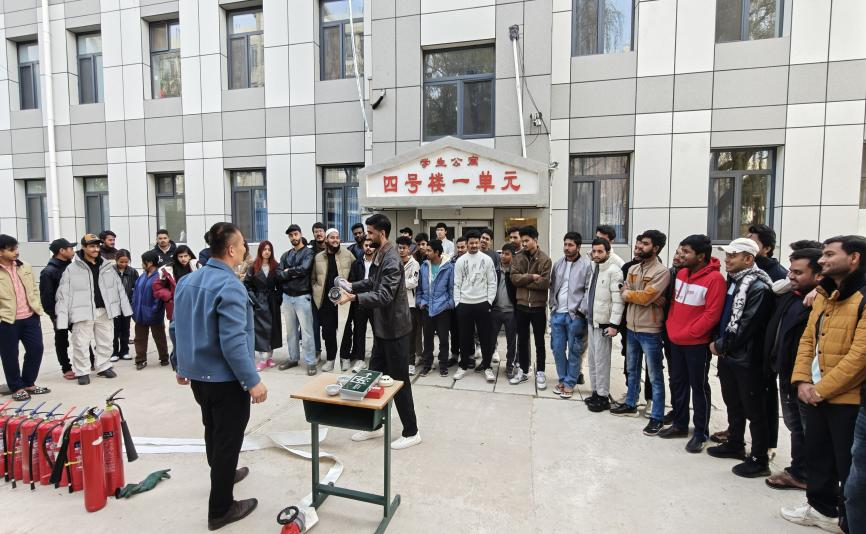 为切实强化国际学生的消防安全意识,提升其消防设施操作技能与应急处置能力,保障宿舍区人员生命财产安全,12月10日下午,国际交流处(国际教育学院)联合安全管理处,在4号宿舍楼举办消防演练,2025级全体国际学生及辅导员老师参与。